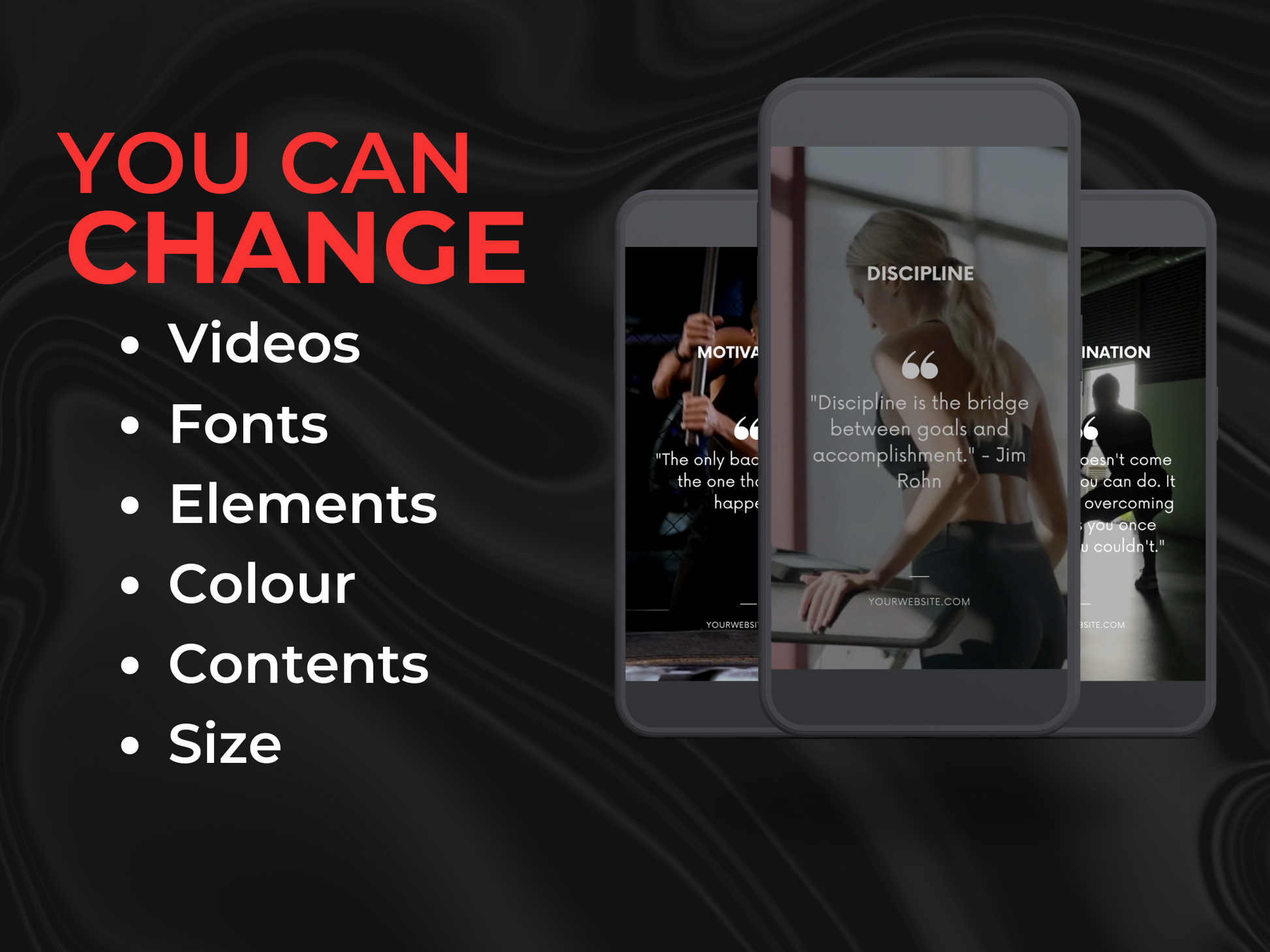 One of the key benefits is that our templates are 100% customizable within Canva. Canva is 100% free and you can open all of the templates on your computer or mobile phone and customize the templates until your heart is content. While you can also alter/add text and even implement your brand colors and logo.