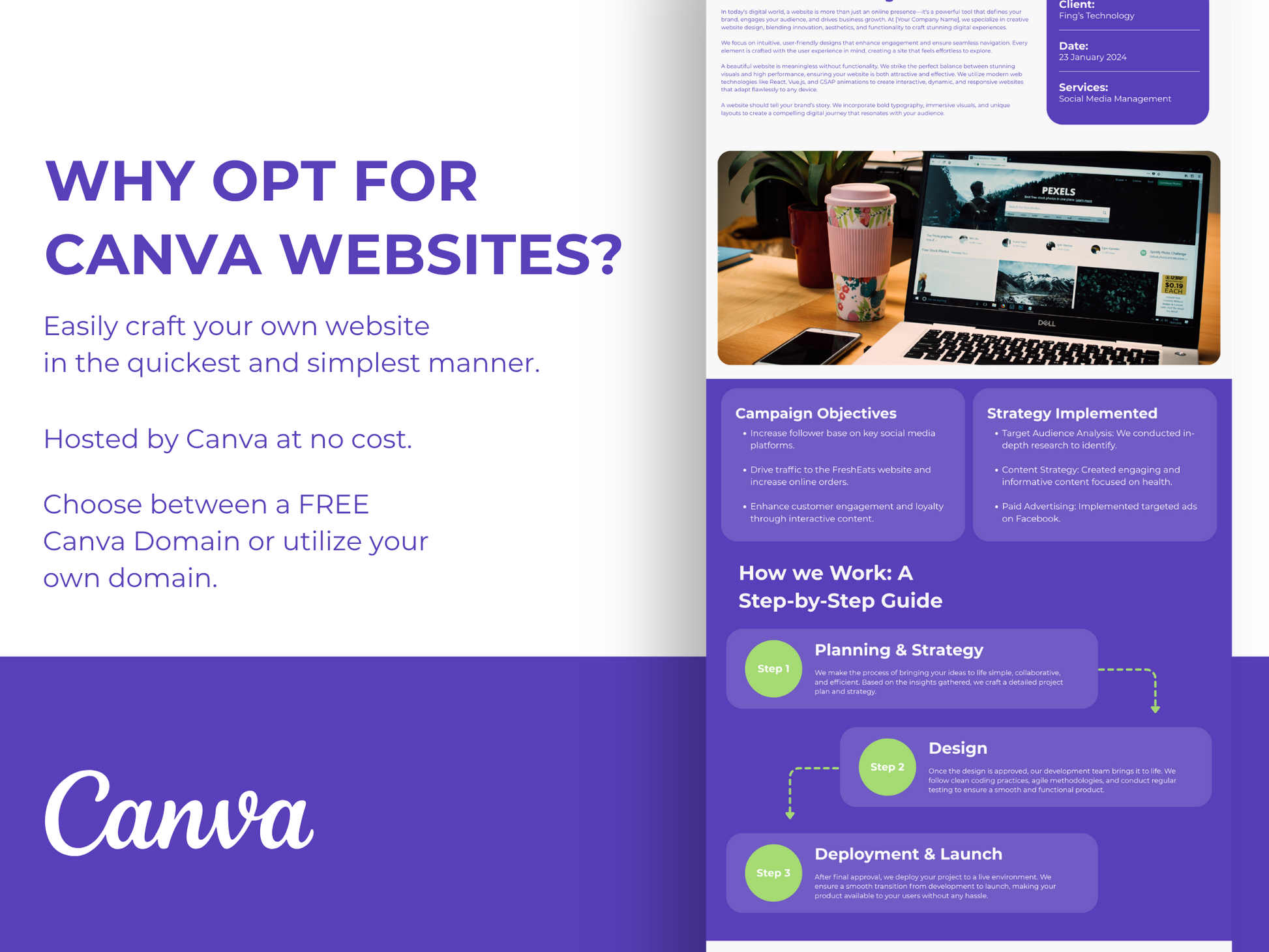 This template is exclusively designed for Canva and is not compatible with other platforms like WordPress or Squarespace.