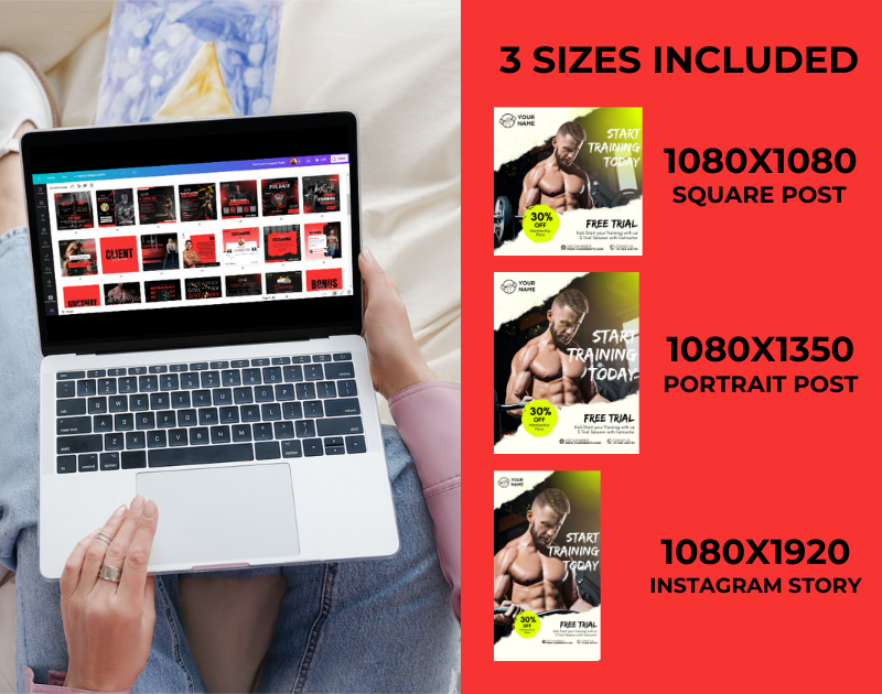 Gym & Fitness Instagram Canva Templates Bundle Kit for Personal Trainer & Coaches